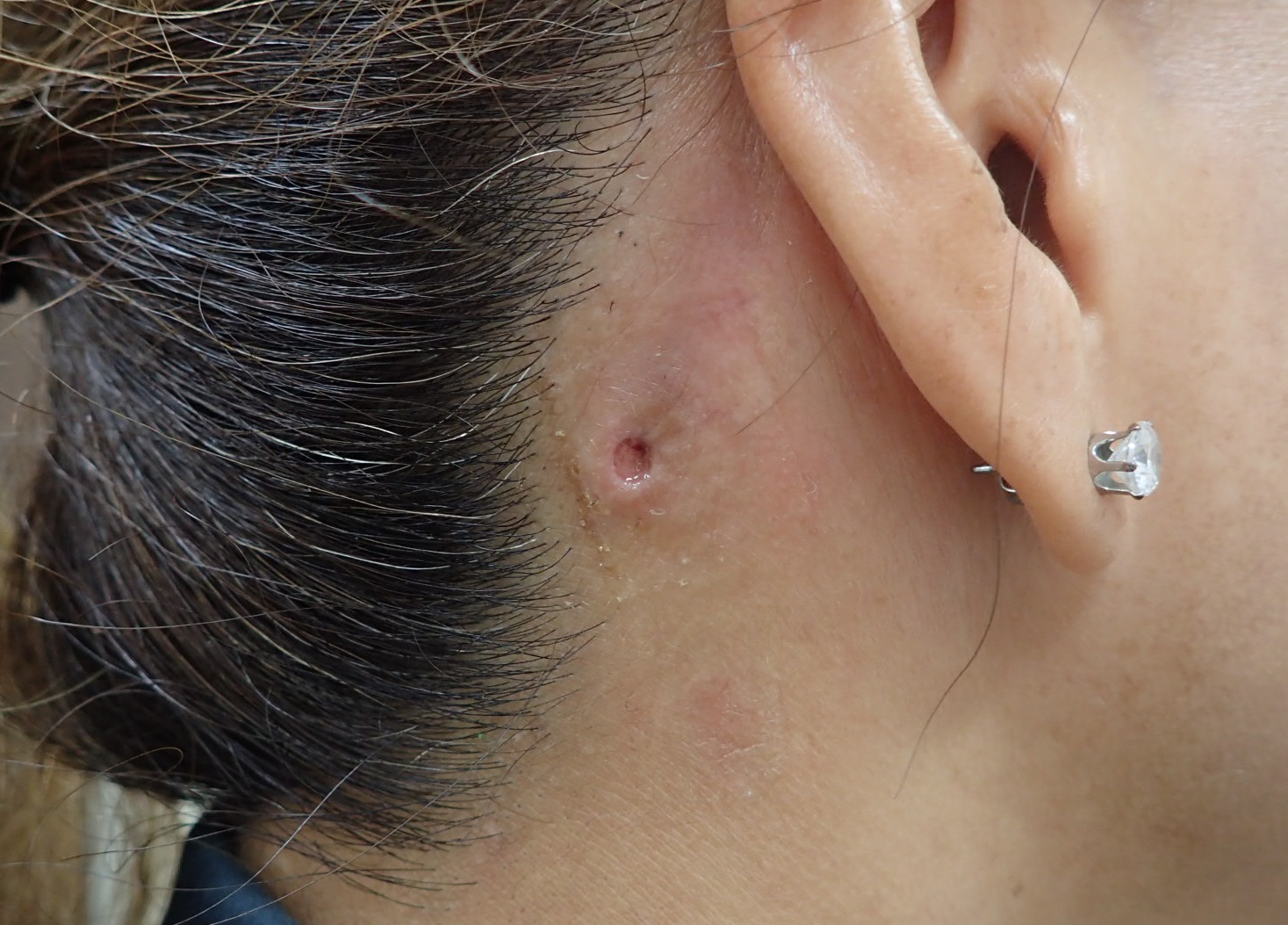 頚部に粉瘤(アテローム)が出来たために、近医である○○形成外科を受診されました。